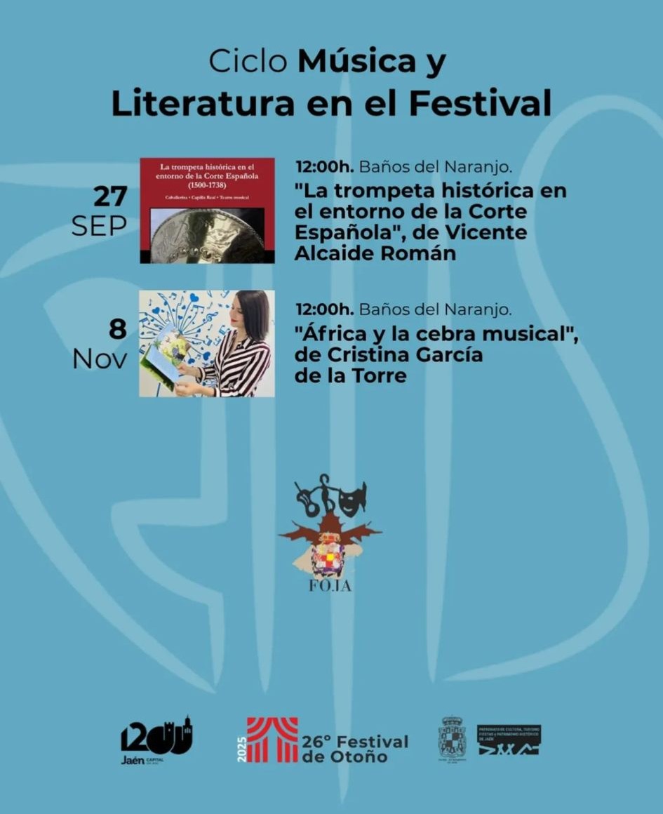 El XXVI Festival de Otoño de Jaén también ofrece un espacio para la reflexión y la divulgación a través del Ciclo Música y Literatura en el Festival, con propuestas que unen el conocimiento, la historia y la creatividad.