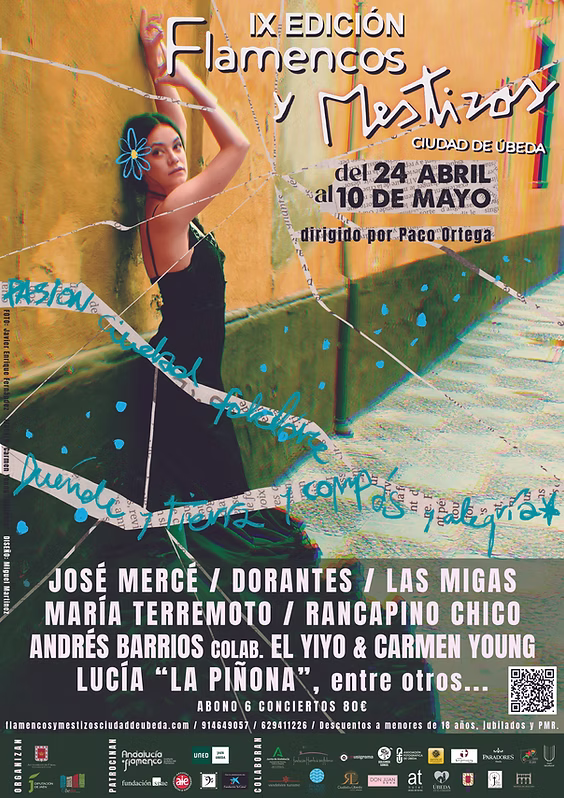 La novena edición arranca el 24 de abril con Dorantes, seguido de Las Migas el día 25. El último fin de semana de abril contará con Morenito de Íllora y Rancapino Chico (30 de abril), Lucía Álvarez ‘La Piñona’ (1 de mayo) y María Terremoto (2 de mayo). La recta final la protagonizarán Andrés Barrios & El Yiyo (8 de mayo), el gran José Mercé (9 de mayo) y la bailaora Dalia Sánchez (10 de mayo).