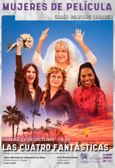 Entradas: gratuitas · recogida en el Centro de Información a la Mujer C/ Pedro Poveda, 4-2º planta, de 10:00 a 14:00 h y en los cines Bowling Linares de 17:30 a 21:00 h a partir del día 16 de octubre.