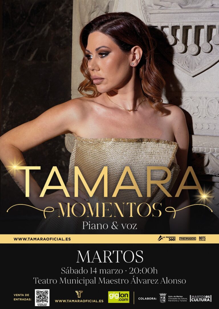La ciudad de Martos recibe a Tamara, una de las voces más emblemáticas de la canción melódica, que presenta su gira Momentos 2026. Este espectáculo...