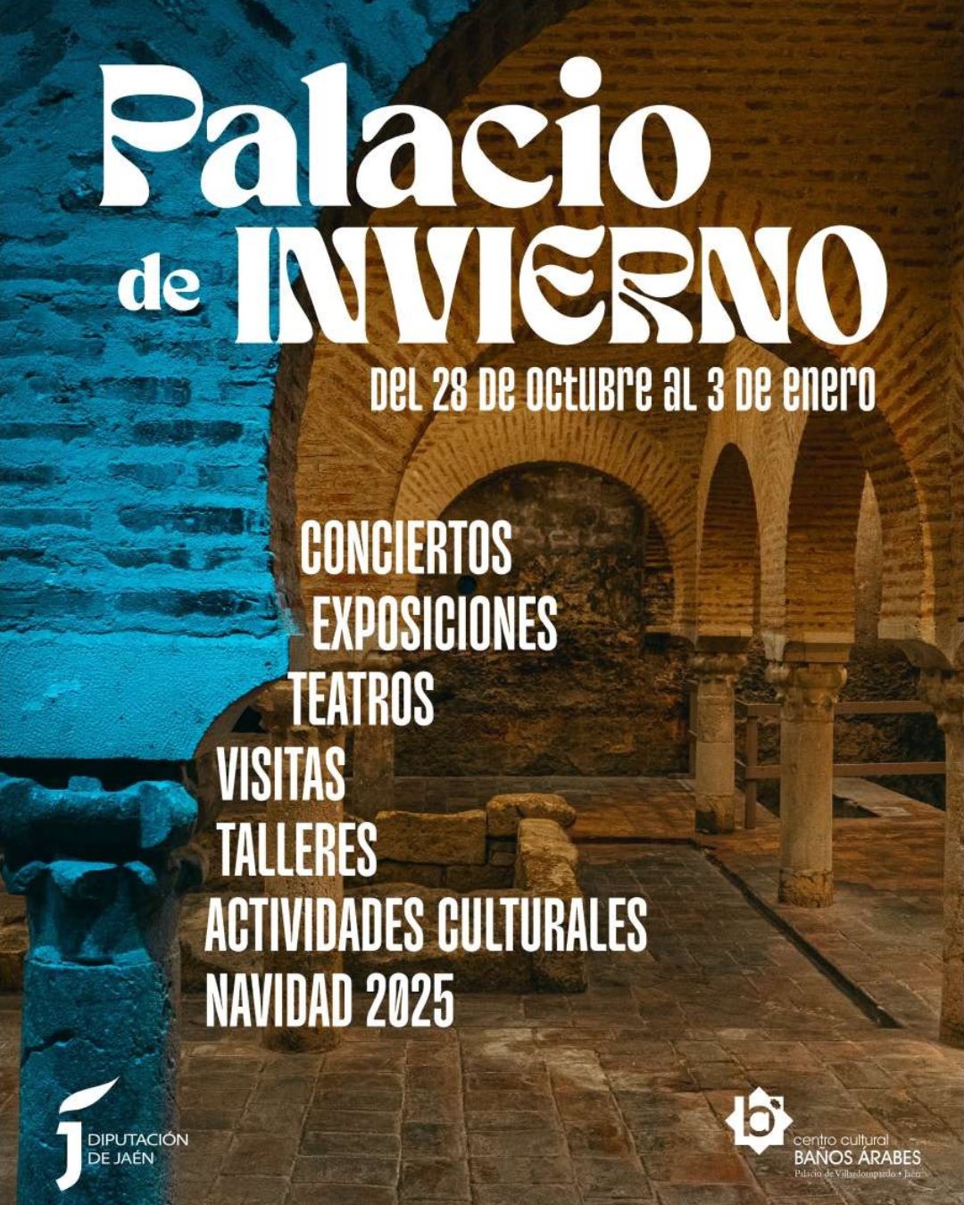Del 28 de octubre al 3 de enero, el Centro Cultural Baños Árabes – Palacio de Villardompardo se convierte en un auténtico Palacio de Invierno, con más de 25 propuestas culturales gratuitas entre conciertos, exposiciones, teatro, talleres y actividades navideñas.