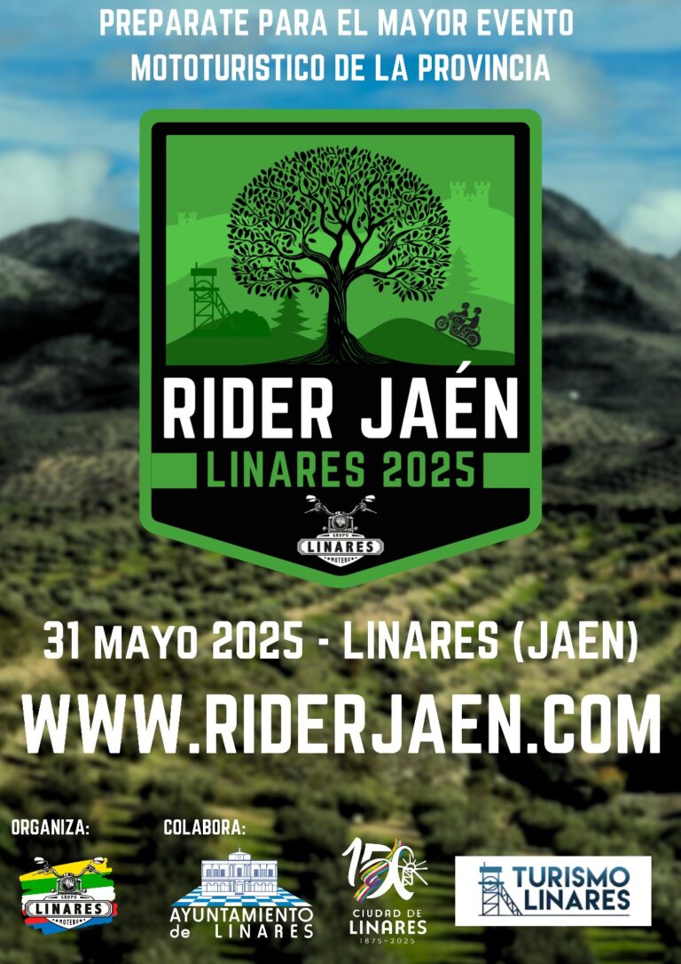 ¡Bienvenido a la RIDER JAÉN 2025! Un evento mototurístico que te llevará a recorrer los impresionantes paisajes de la provincia de Jaén el próximo 31 de mayo de 2025. Con salida y llegada en Linares (Jaén), podrás elegir entre dos rutas adaptadas a distintos niveles de exigencia y disfrute.