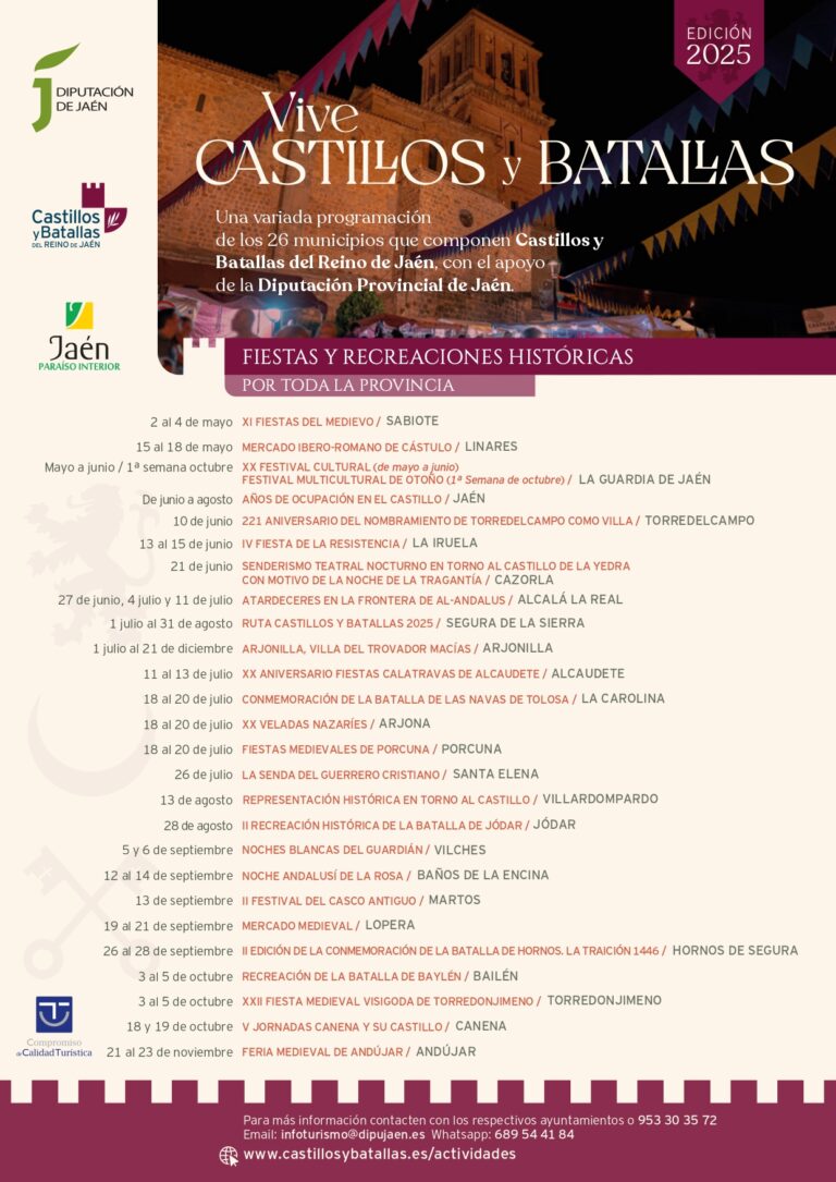 Durante dos días, el municipio de Canena abrirá las puertas de su imponente castillo para acoger visitas guiadas, conferencias, actividades para todos los públicos y espectáculos que te harán viajar al pasado.
