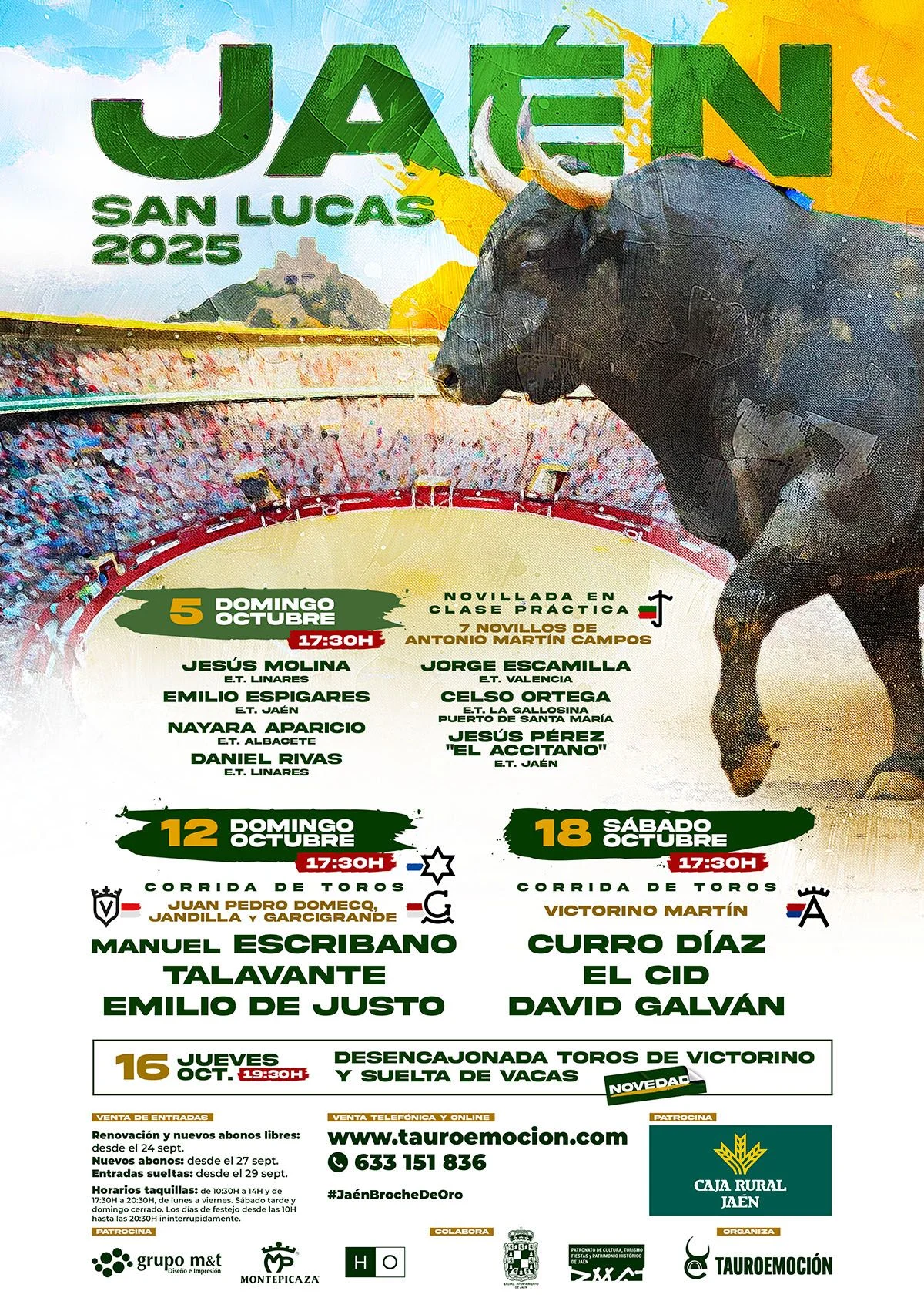 Tauroemoción ha anunciado oficialmente los carteles de la Feria Taurina de Jaén 2025, que contará con dos corridas de toros, una novillada en clase práctica y una desencajonada con suelta de vacas para los aficionados.