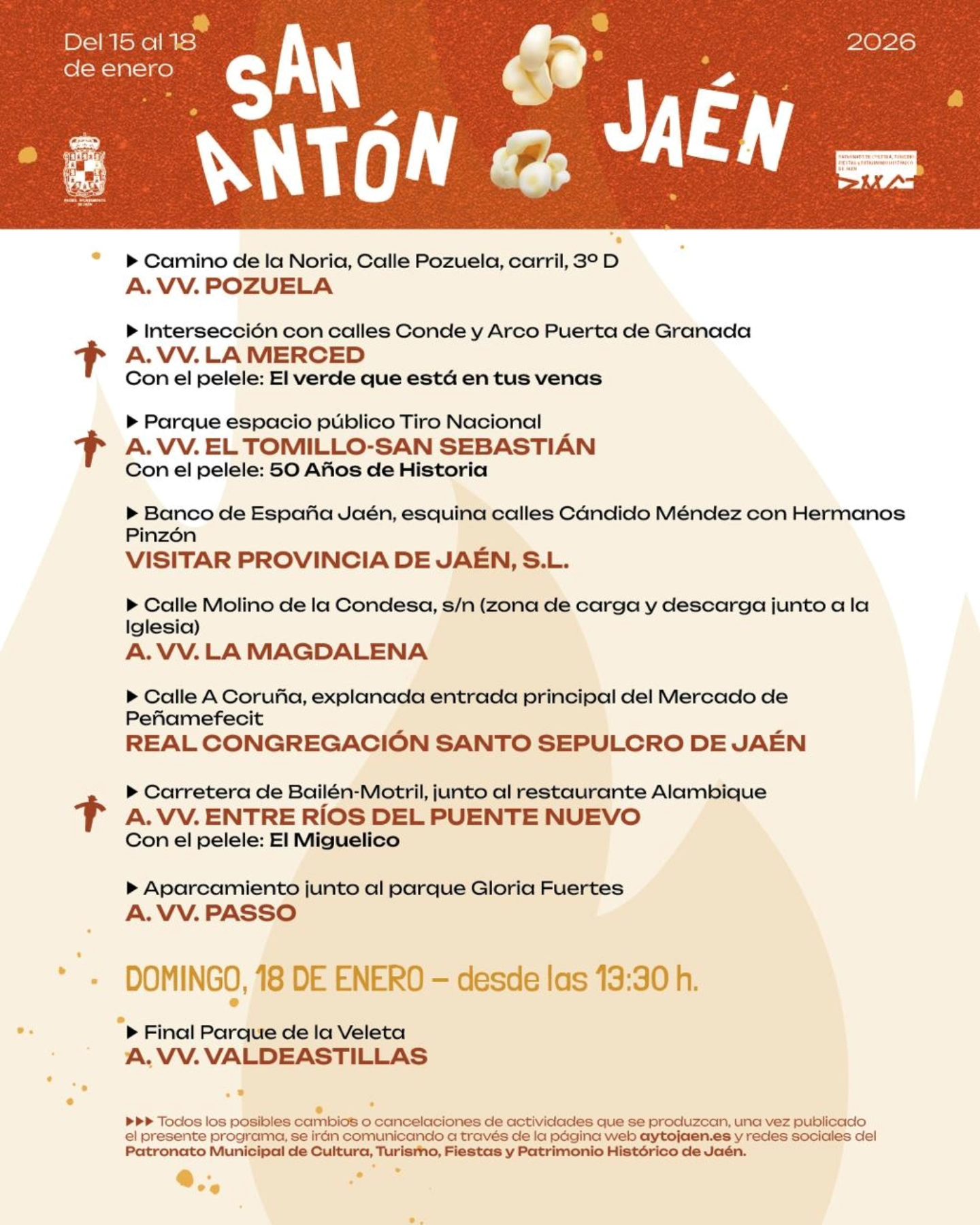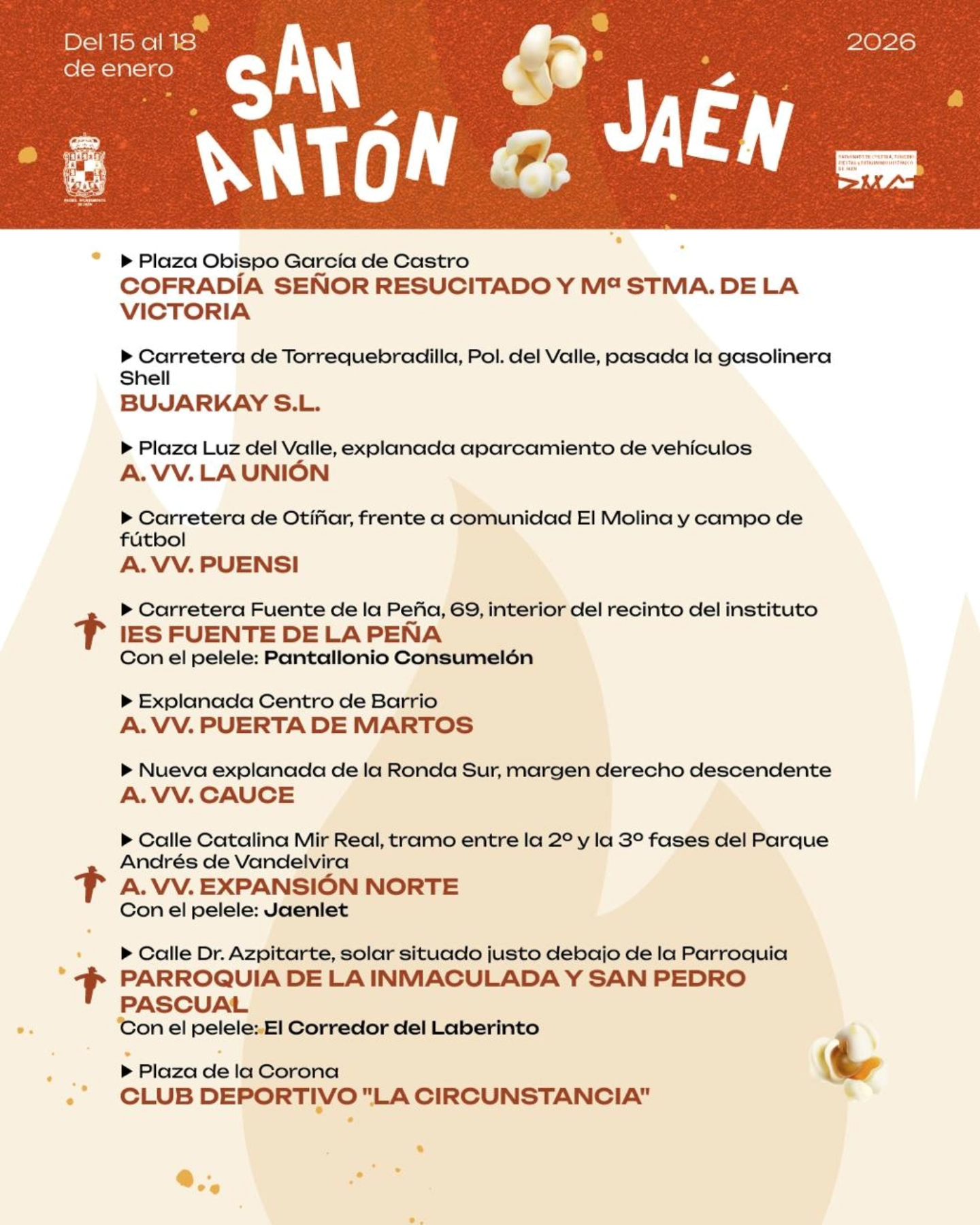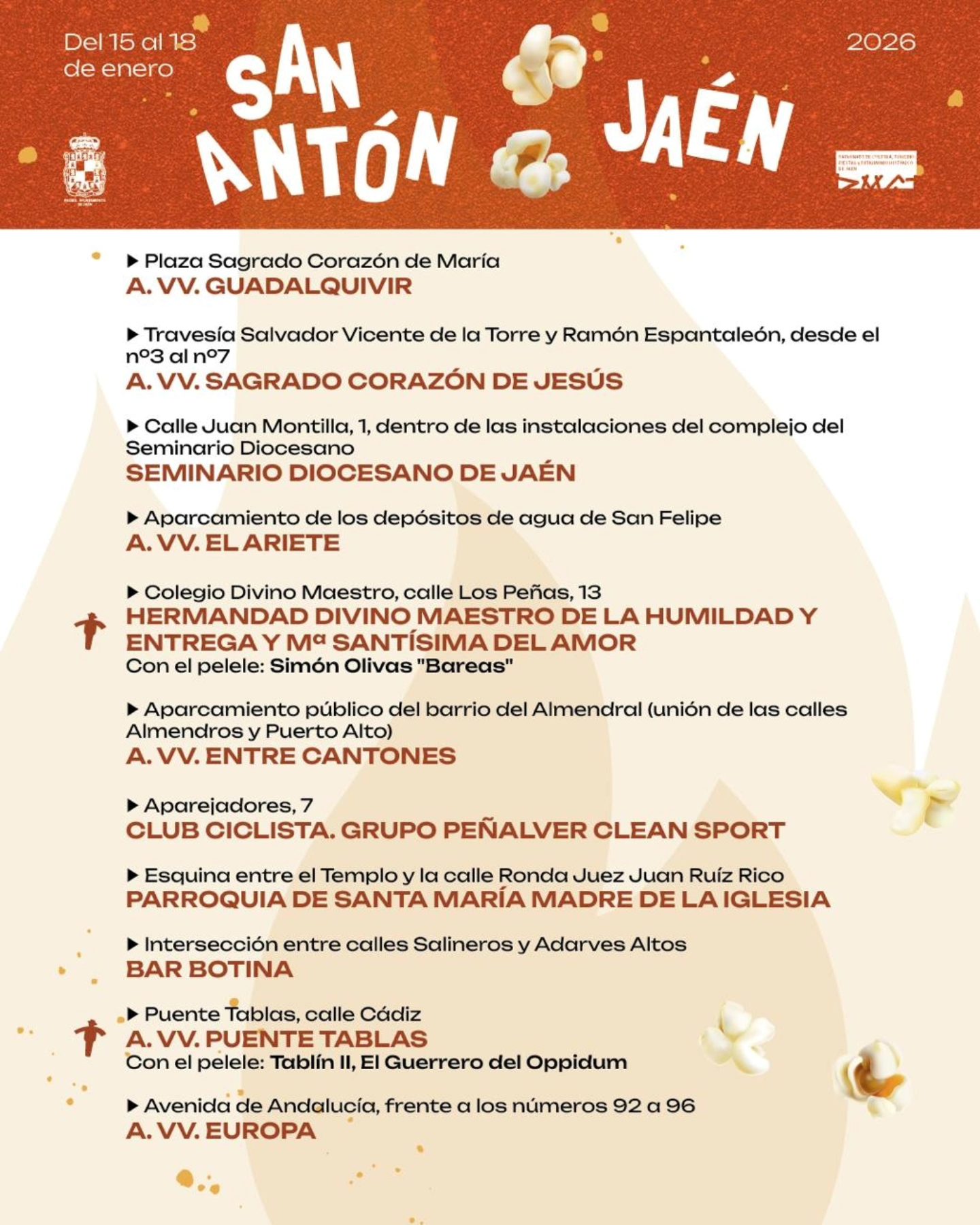 Ubicación de las Lumbres de San Antón en Jaén 2026